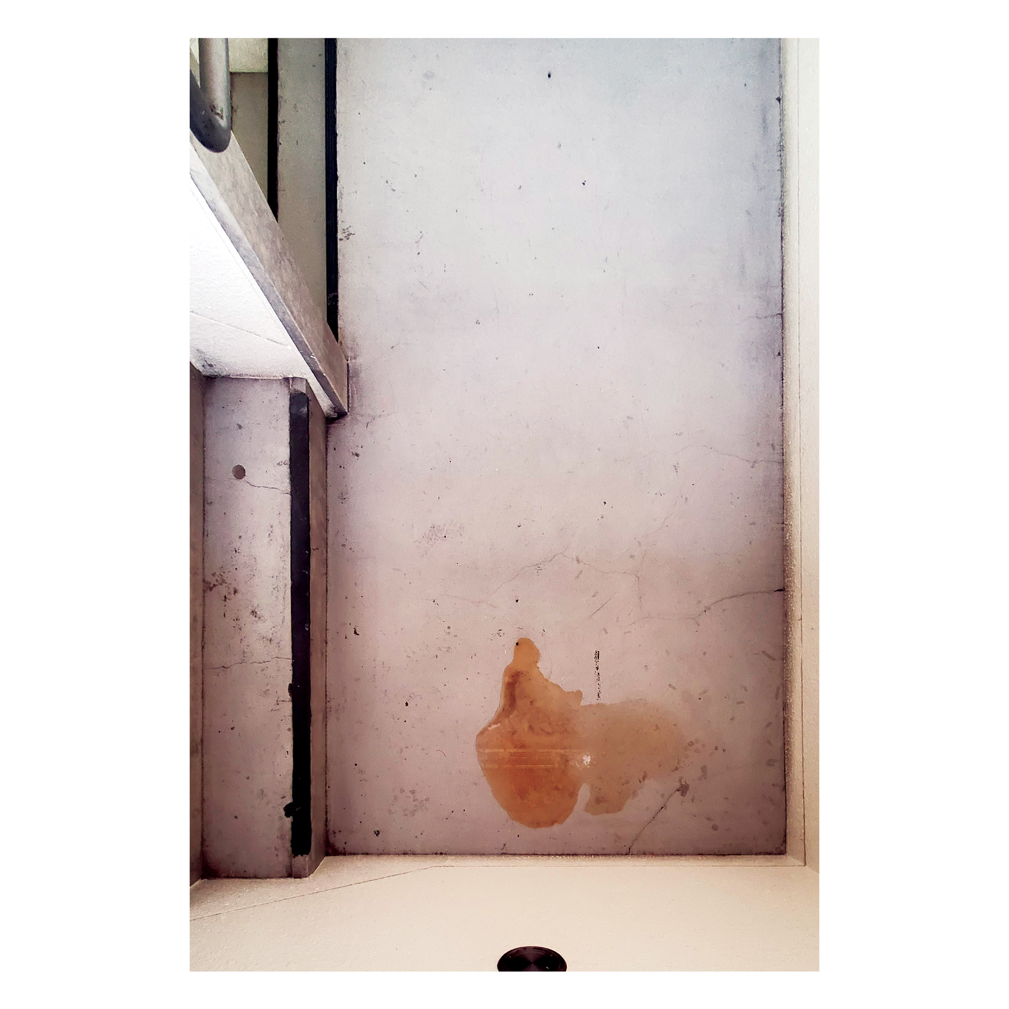 写真は、こうした小さな使用と無視の痕跡に焦点を当てている。本来その空間に属するはずのない痕跡が、それでも空間に溶け込んでいる。人は時に、気に留めないことがある。ルールを守ったり、汚れを落としたり、矛盾を認めたりするために必要な労力は、行動する意志よりも大きい。ルールは秩序を主張するが、階段は、その主張がいかに容易に無視されるかを示している。
