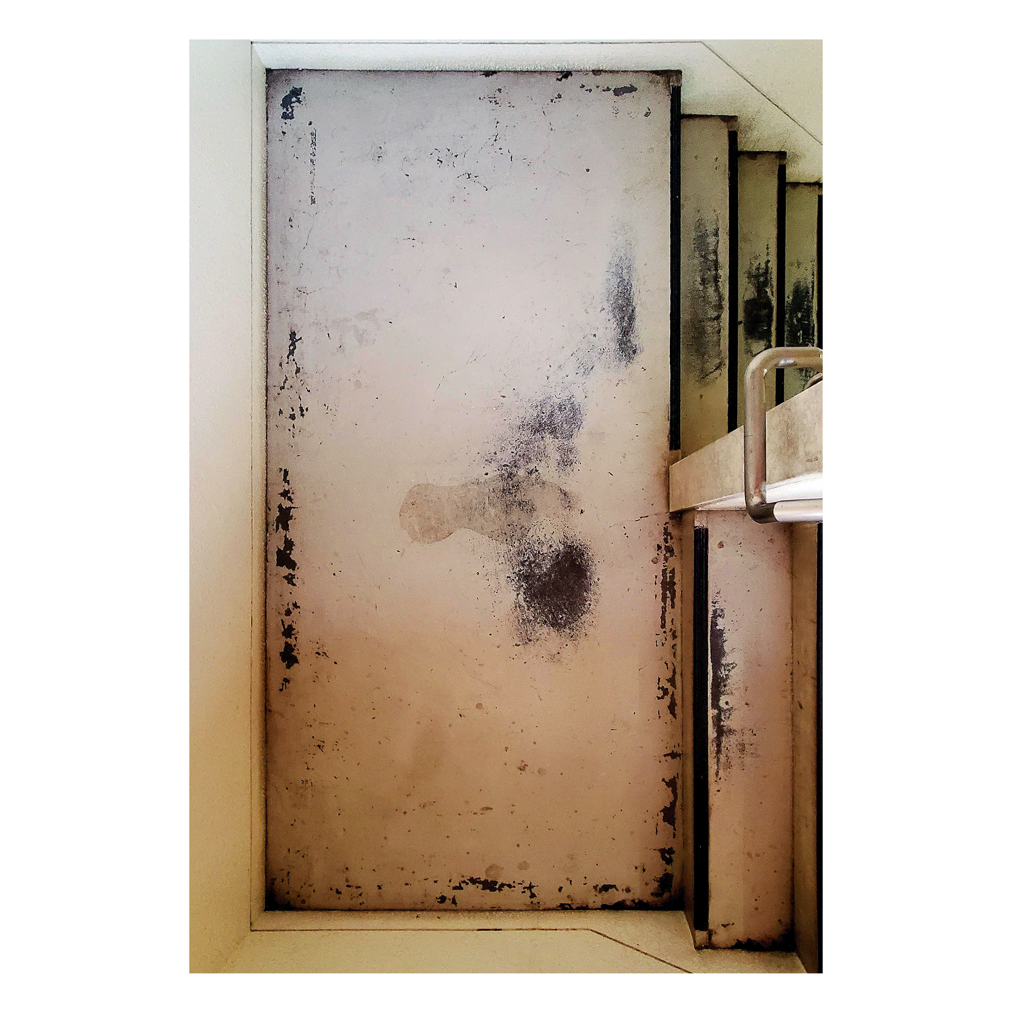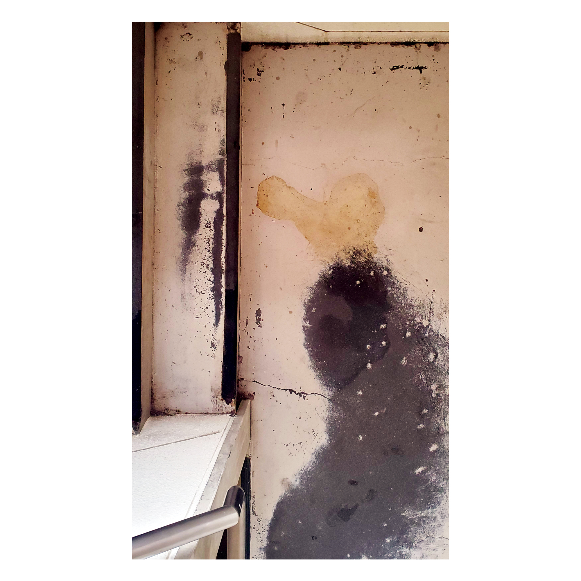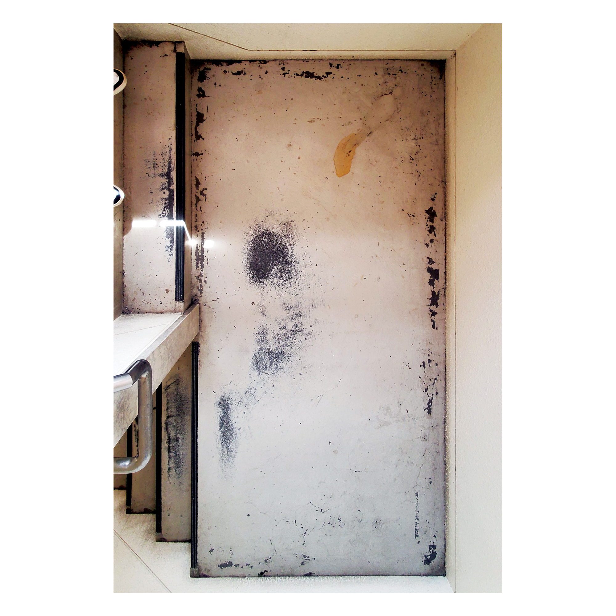 The photographs focus on these small signs of use and disregard, marks never meant to belong to the space yet absorbed into it all the same. At times, people just can’t be bothered. The effort required to enforce the rule, to clean the stain, or to acknowledge the contradiction is greater than the will to act. The rules insist on order; the stairwell shows how easily that insistence is ignored.